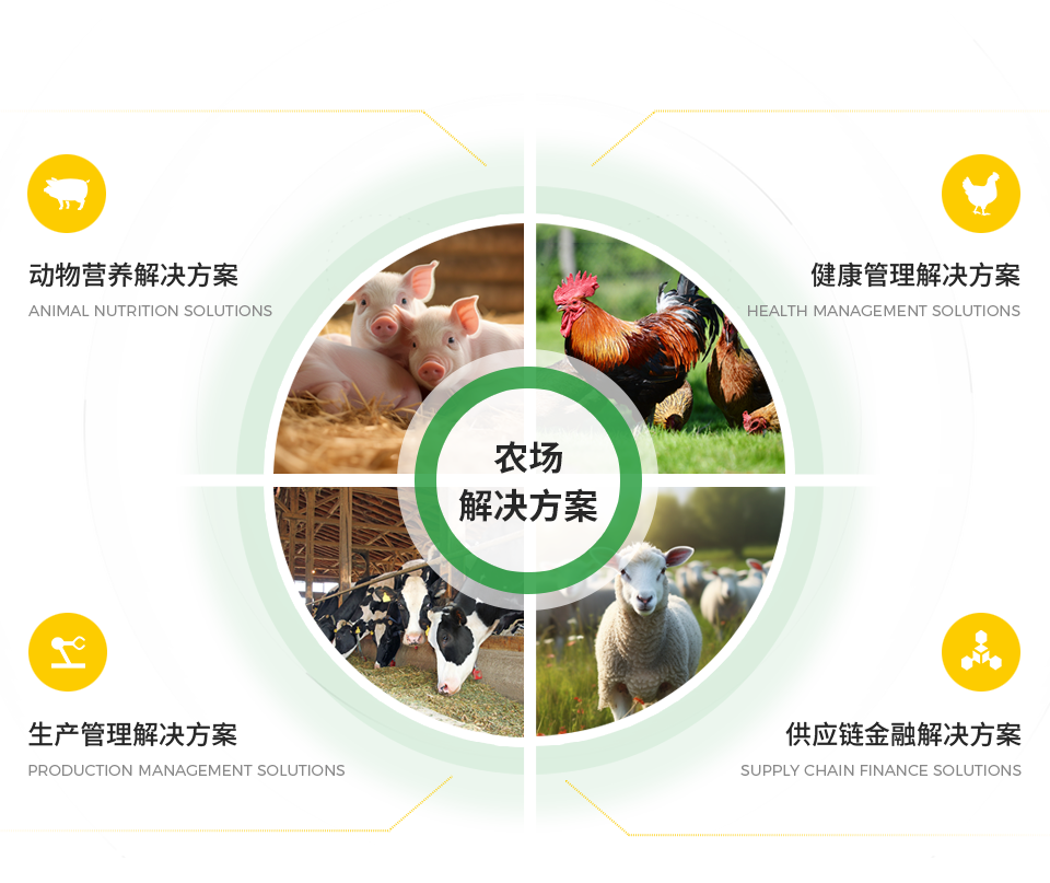 截止目前,集團(tuán)主要產(chǎn)品覆蓋豬、家禽、反芻動(dòng)物等,主要解決方案覆蓋動(dòng)物營養(yǎng)、生產(chǎn)管理、健康管理、供應(yīng)鏈金融方案等內(nèi)容,致力于成為農(nóng)場(chǎng)整體解決方案引領(lǐng)者,提升農(nóng)場(chǎng)生產(chǎn)安全和效能。